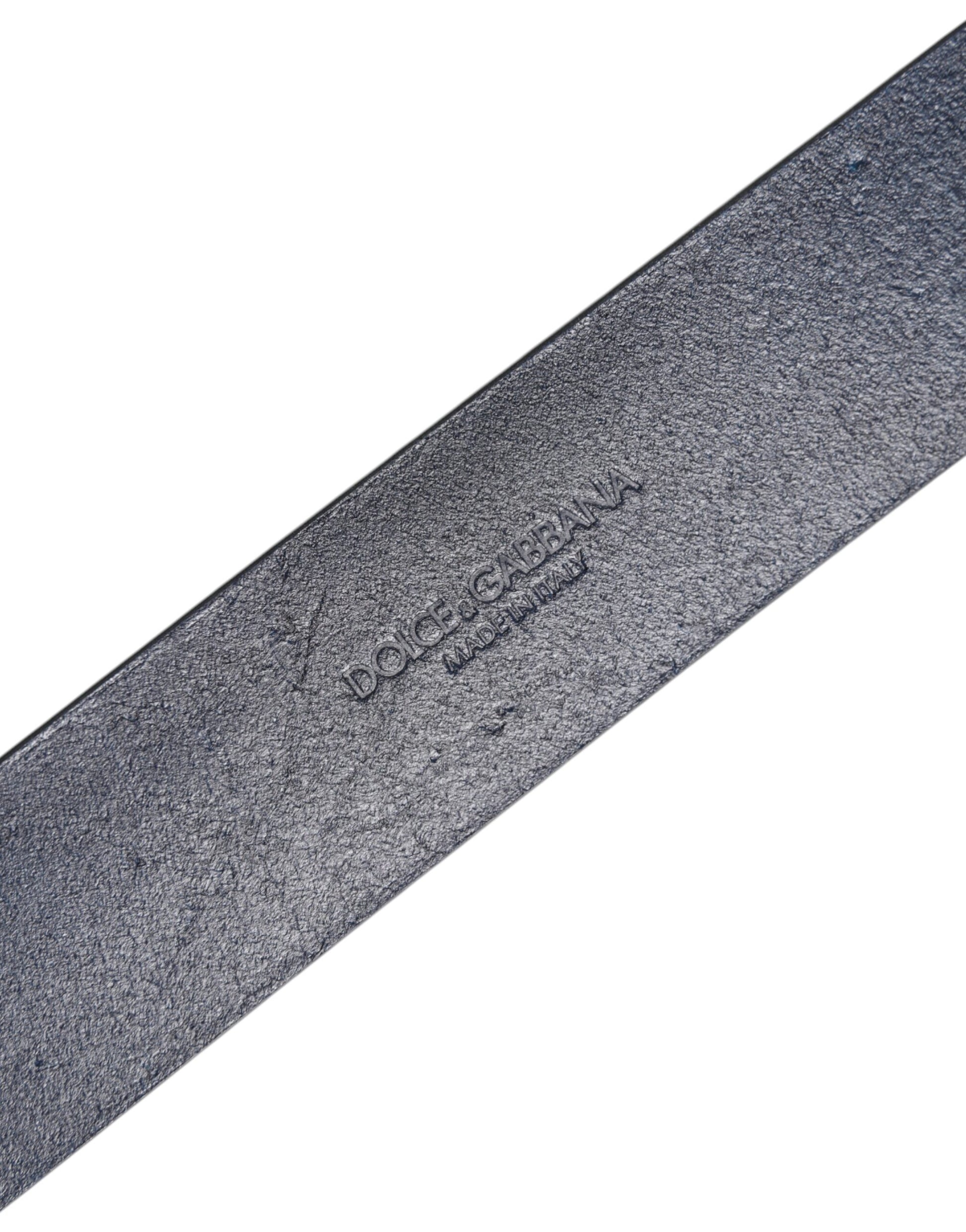 Dolce & Gabbana Blue Leather Classic Metal Logo Buckle Belt