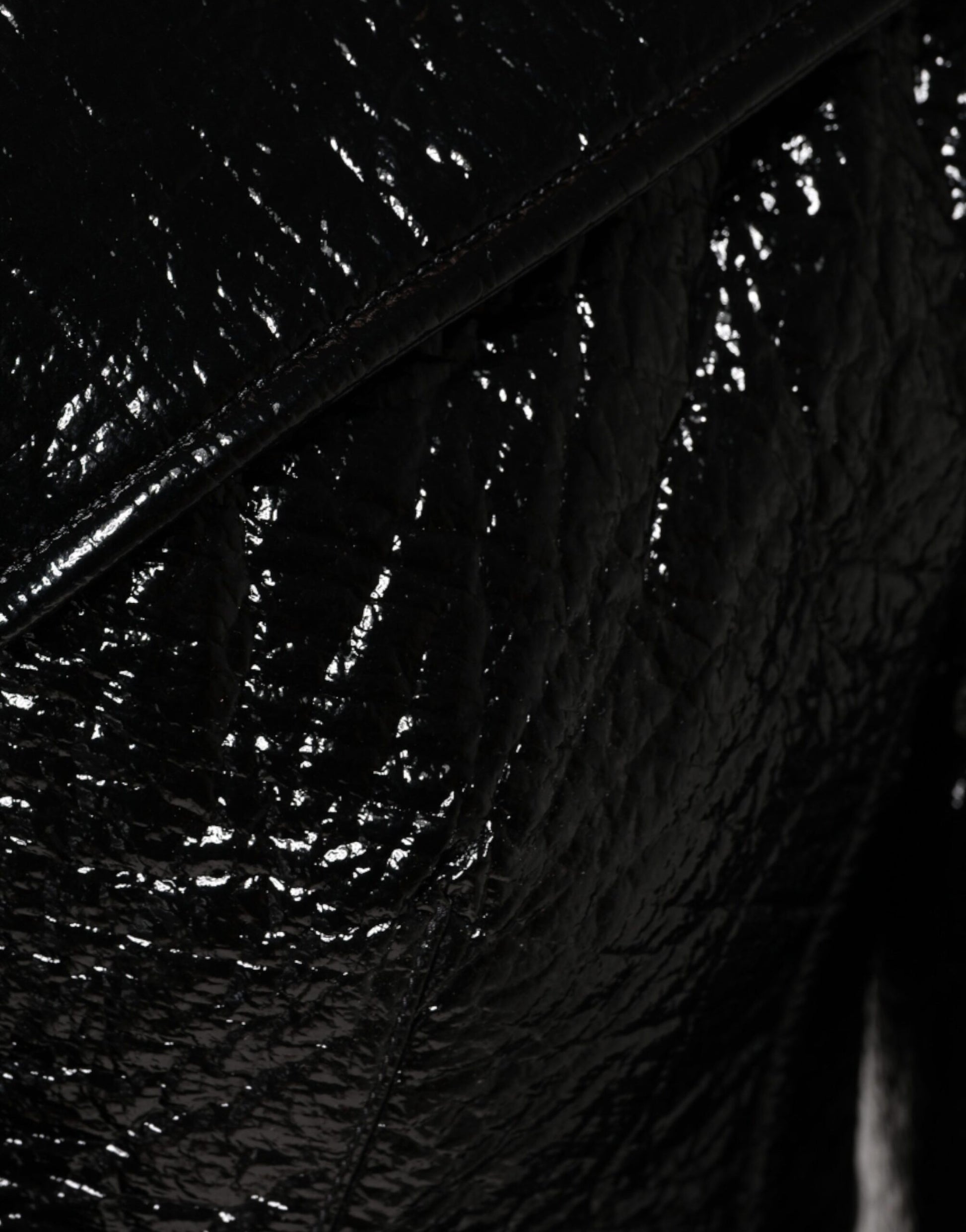 Dolce & Gabbana - Manteau court en cuir noir à manches longues