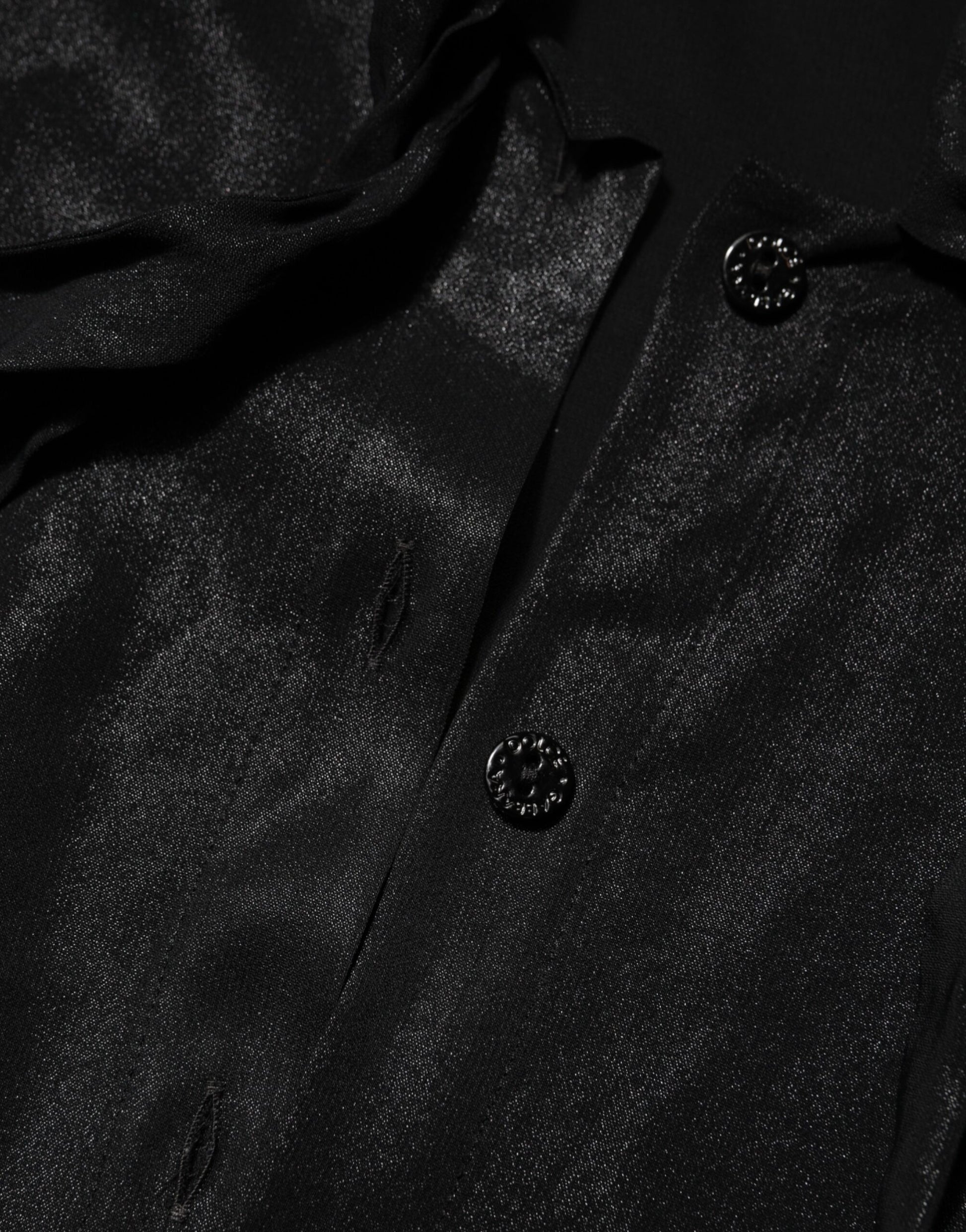 Superbe chemisier Dolce & Gabbana neuf et 100 % authentique. Ce chemisier noir sophistiqué à manches longues arbore un col à nouer féminin, une fermeture boutonnée sur le devant et une silhouette chic qui se porte aussi bien en journée qu'en soirée.