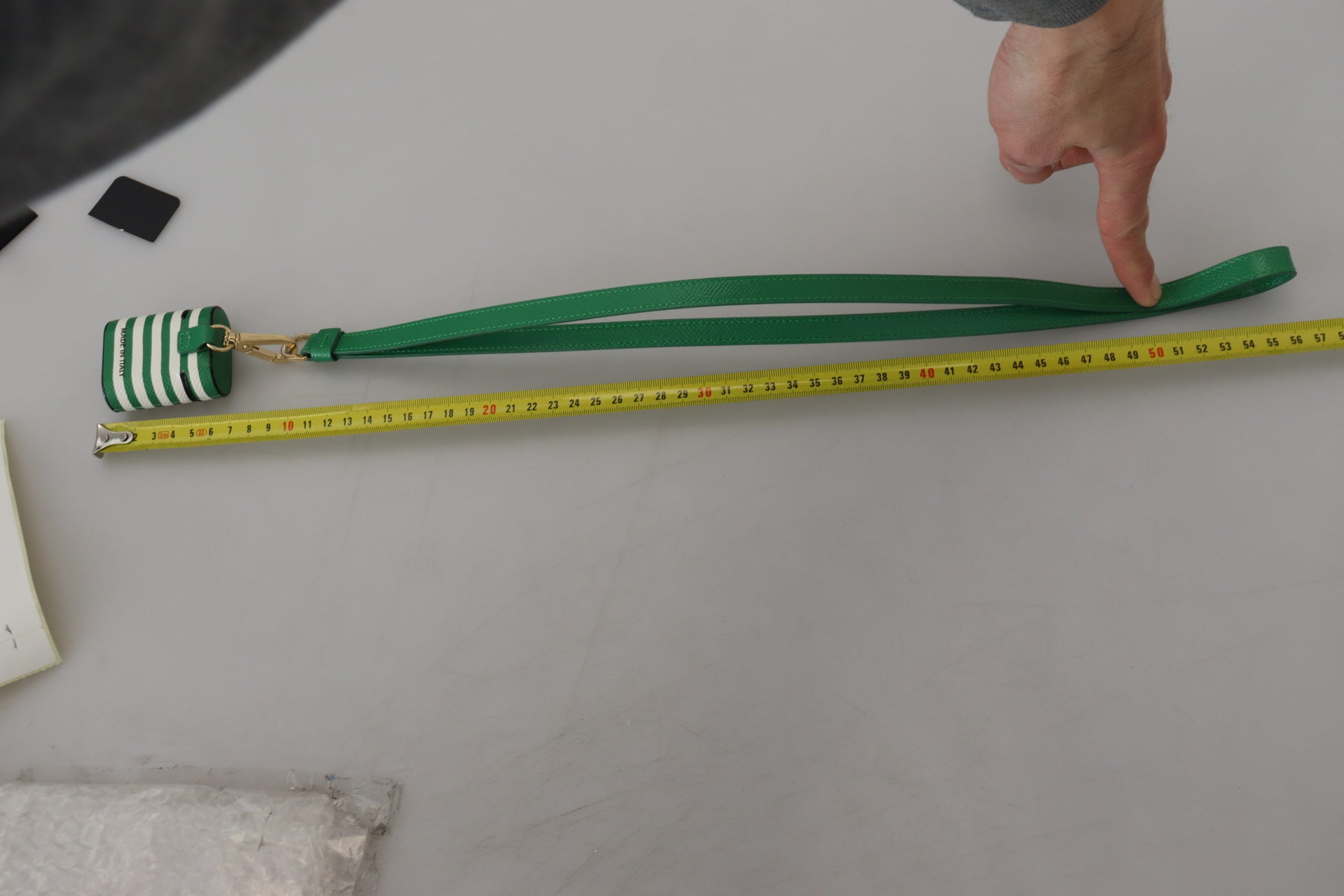 Étui pour Airpods Dolce & Gabbana avec bracelet en cuir vert et logo en métal doré