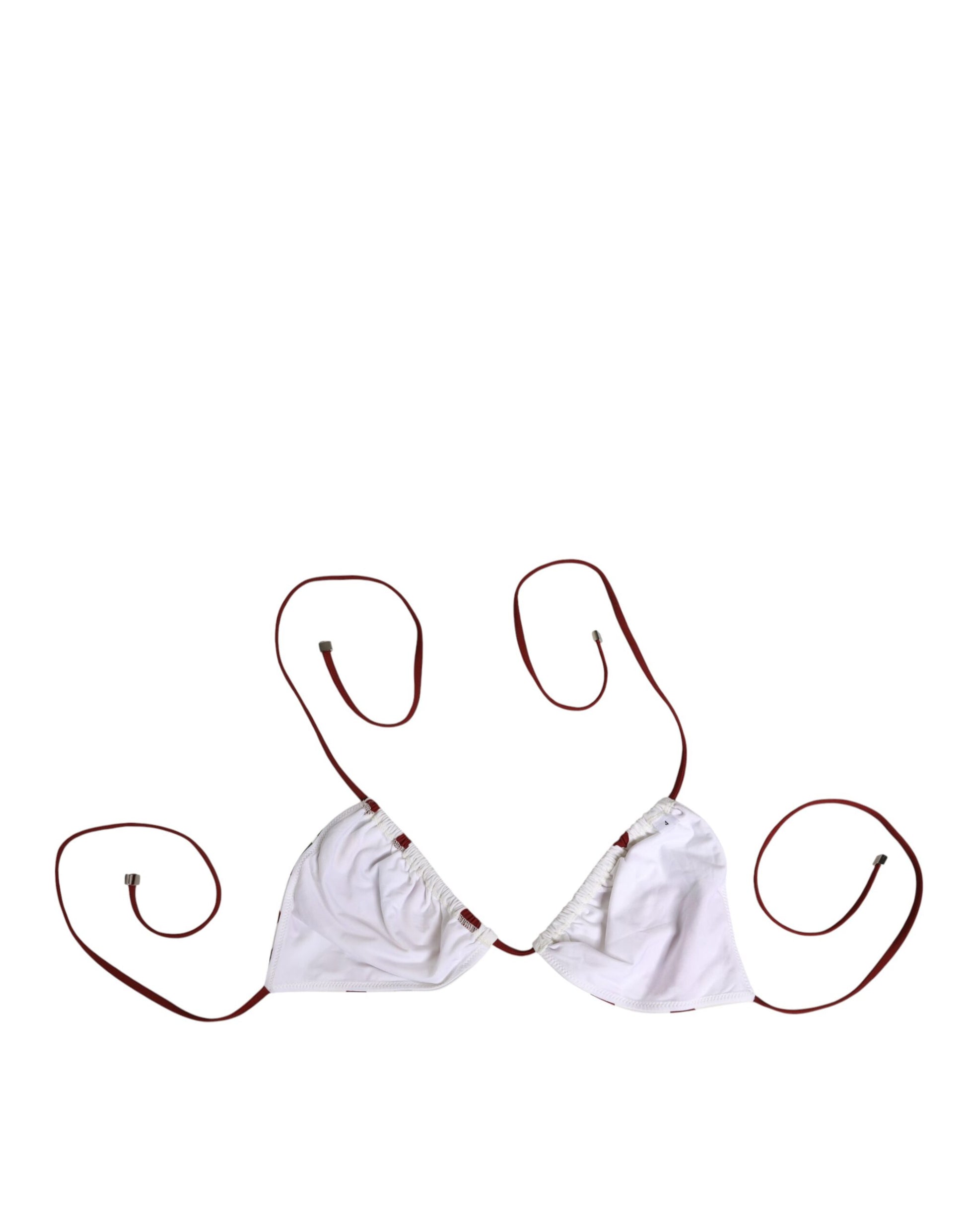 Superbe haut de bikini Dolce & Gabbana neuf et 100 % authentique, orné d'un motif à pois rouges ludiques, rehaussé d'imprimés floraux éclatants et d'un motif papillon. Conçu dans une coupe triangle classique avec des bretelles bordeaux réglables, il allie confort et élégance. Confectionné en Italie à partir de matériaux haut de gamme, ce modèle incarne le mélange signature de Dolce & Gabbana, alliant luxe et sophistication.