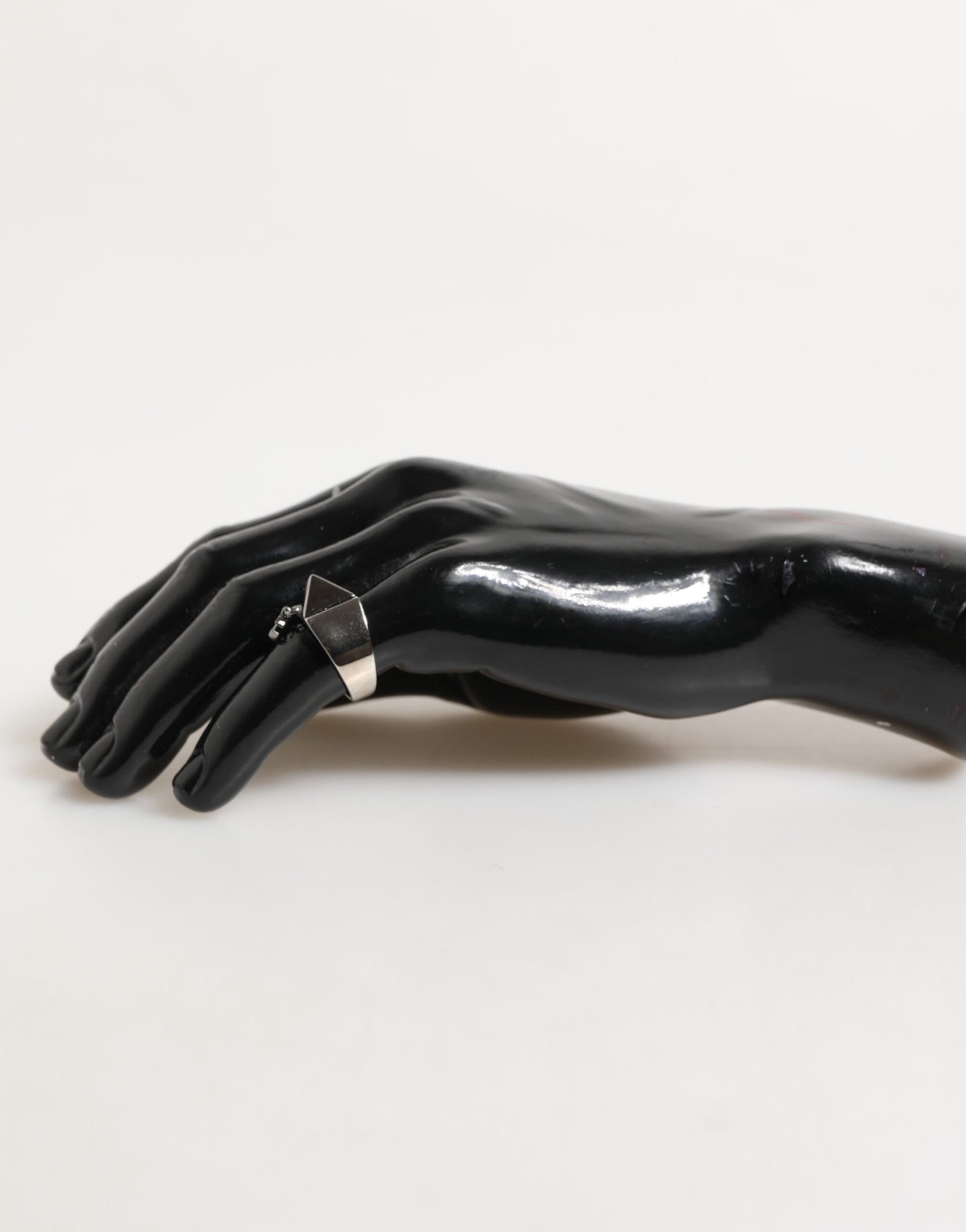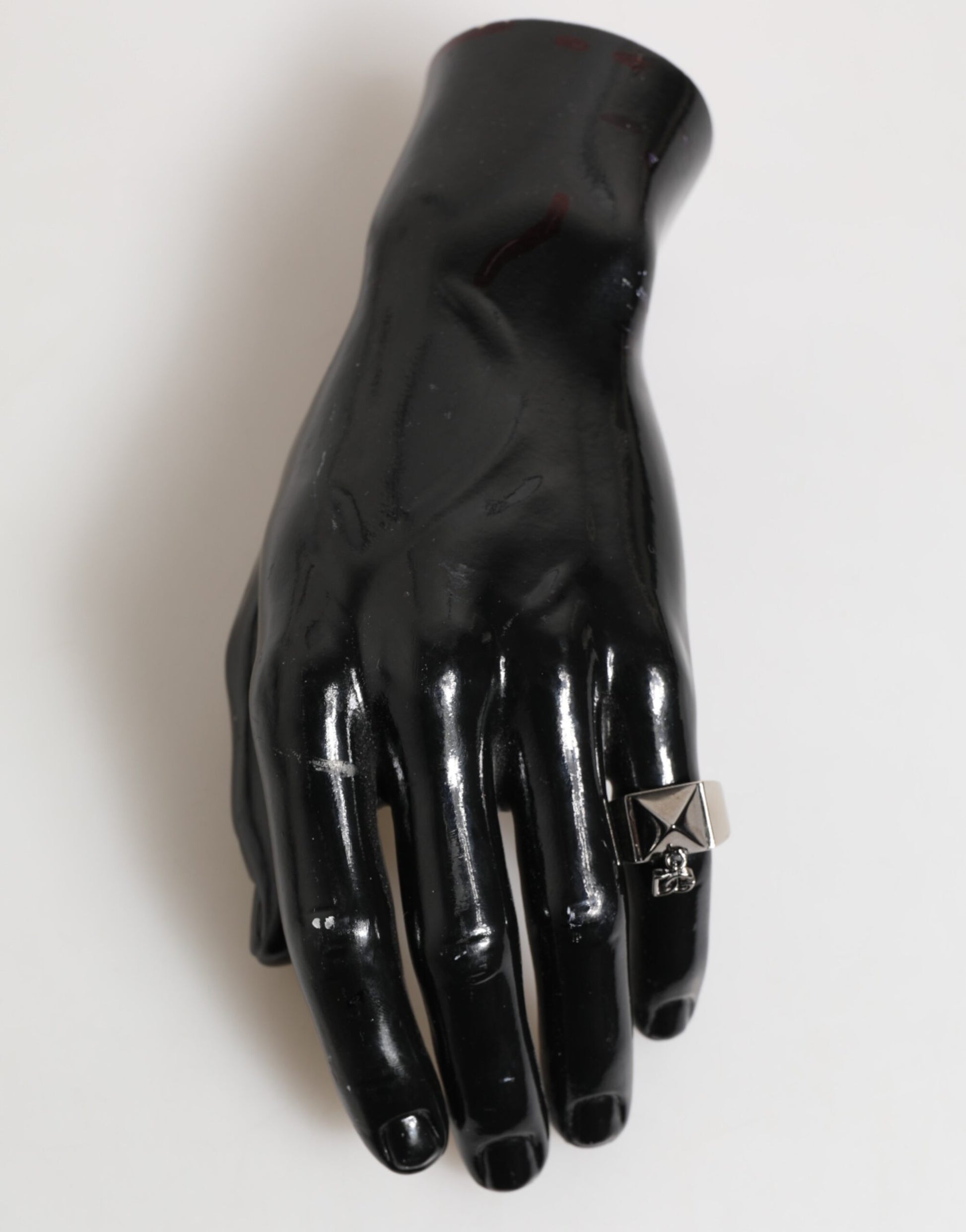 Features a bold silver-tone pyramid design crafted from real brass, accented with the iconic DG logo for a modern, edgy look. The geometric shape and polished finish make this a standout piece perfect for elevating any outfit.