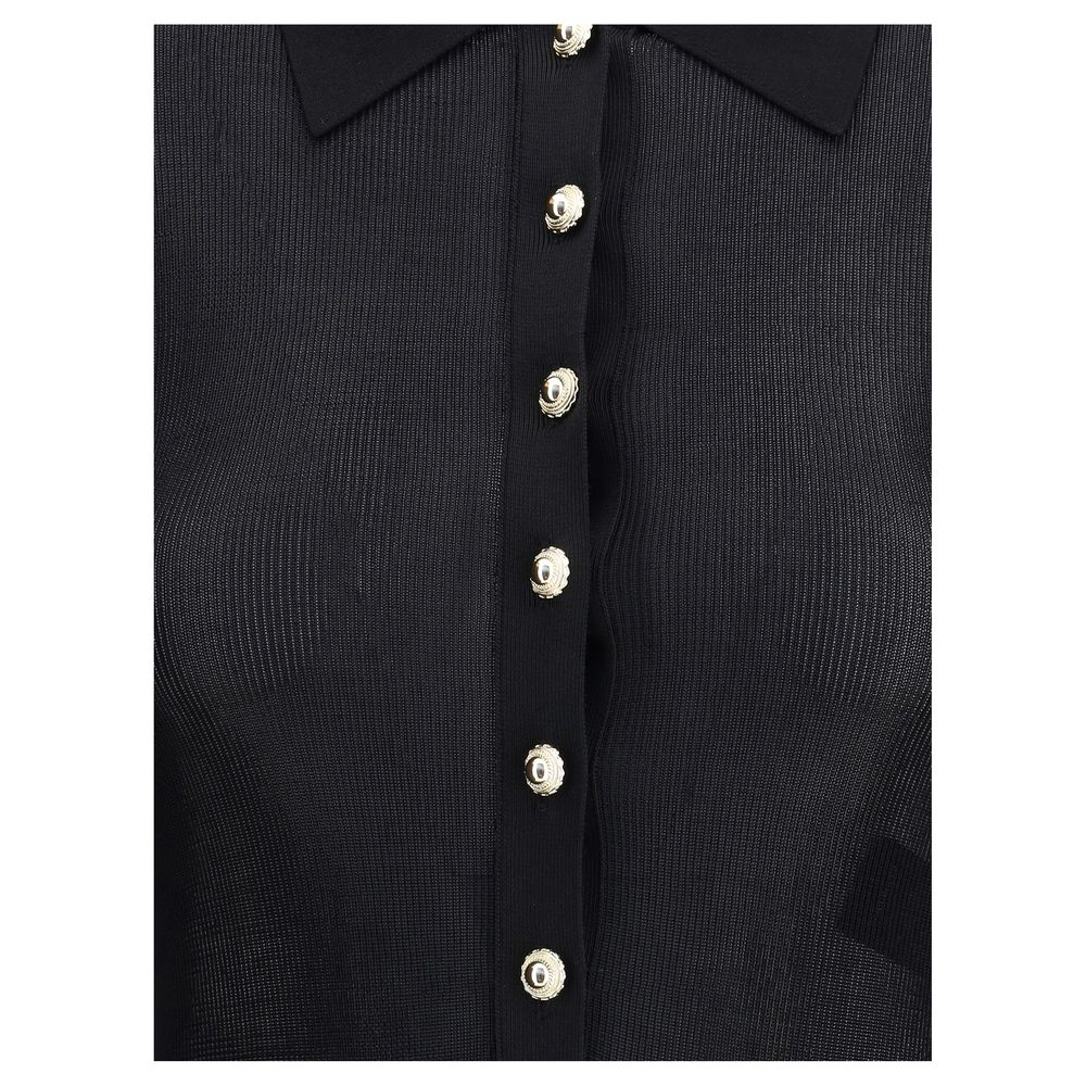 Self-Portrait’s knit Bodysuit combines elegance and practicality in a refined design. Featuring long sleeves and a classic collar, it has a front closure with embossed buttons that add a precious touch. The closure on buttoned briefs ensures comfort and a flawless fit, perfect for curated, feminine looks.